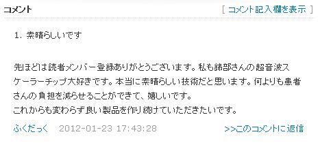 こちらのコメントをいただいた、ふくだっくさんのブログはこちらです。