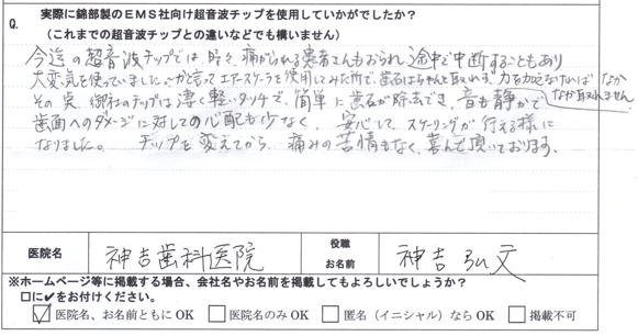 今回は錦部製作所が製造するEMSさん向け超音波スケーラー用チップに関する感想を頂戴しました。