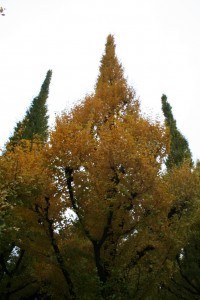 東京の神宮外苑の金色に色づいた銀杏並木を
