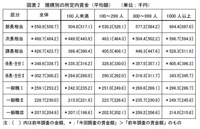 一方で方、一般職層では、係長クラスで大企業40.5 万円、小企業33.5 万円。