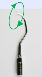 ピエゾ方式は直線的に動きますので、側面を使うと効果的に歯石などが除去できます。