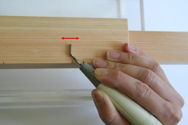 側面をシャープニングするときのなでるDAKEの動きと握り